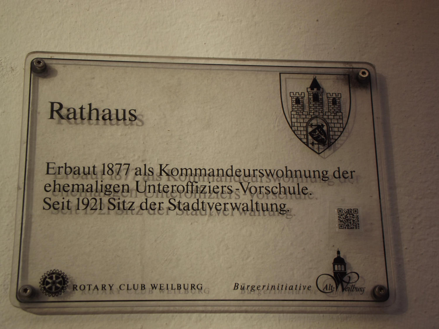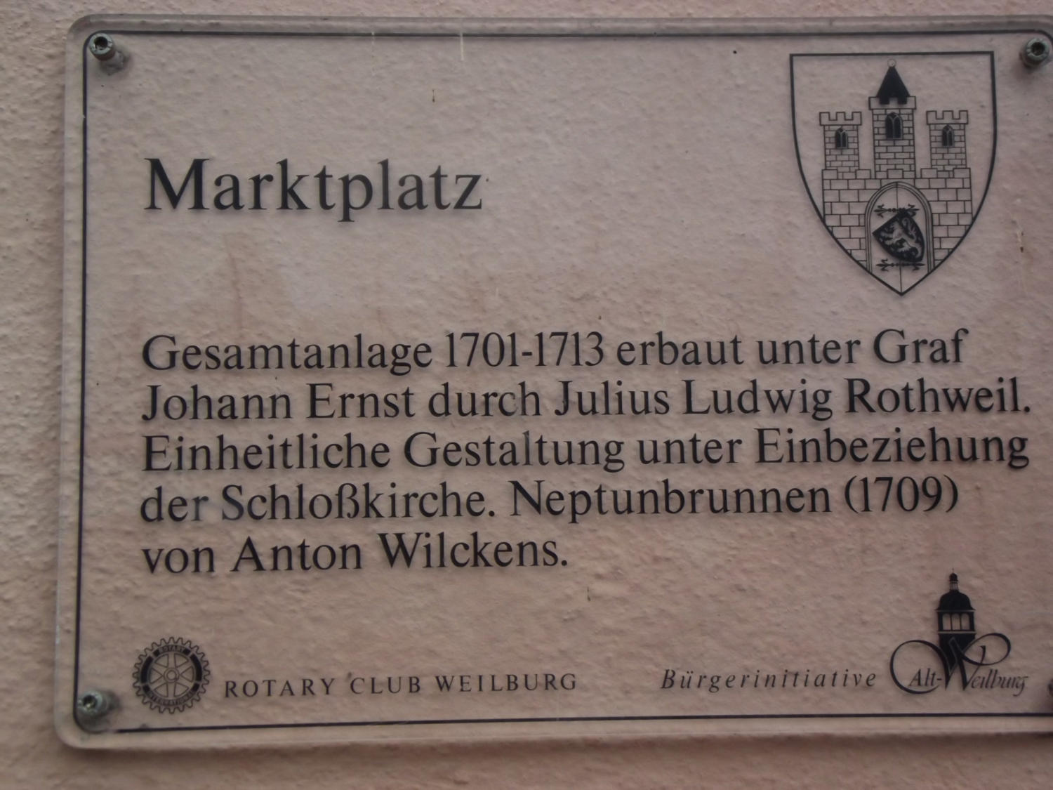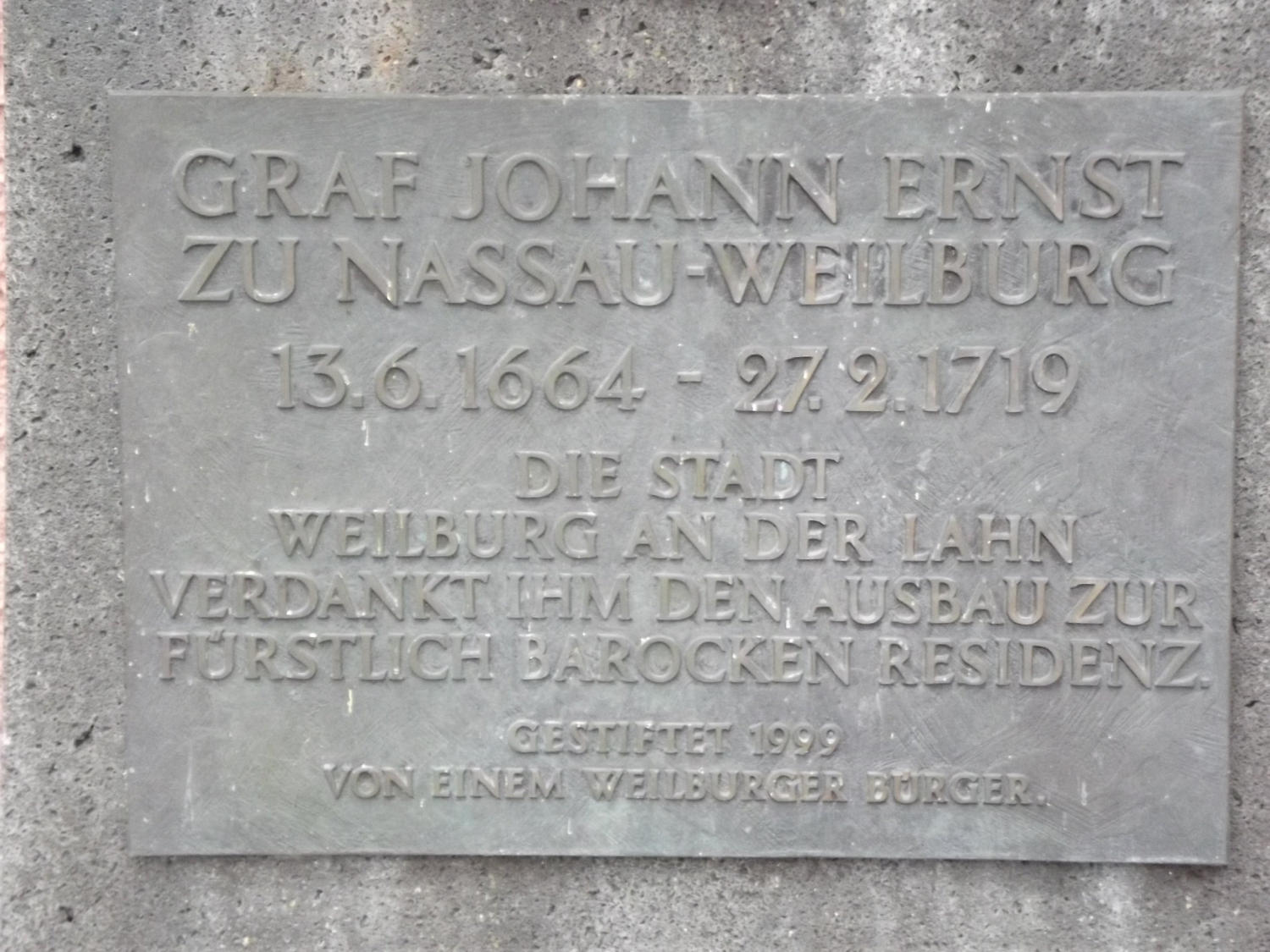 Die Seite zeigt 62+6 Inschriften auf Denkmälern, an Gebäuden und Informationstafeln in der Stadt Weilburg. Die folgende Auflistung ist in