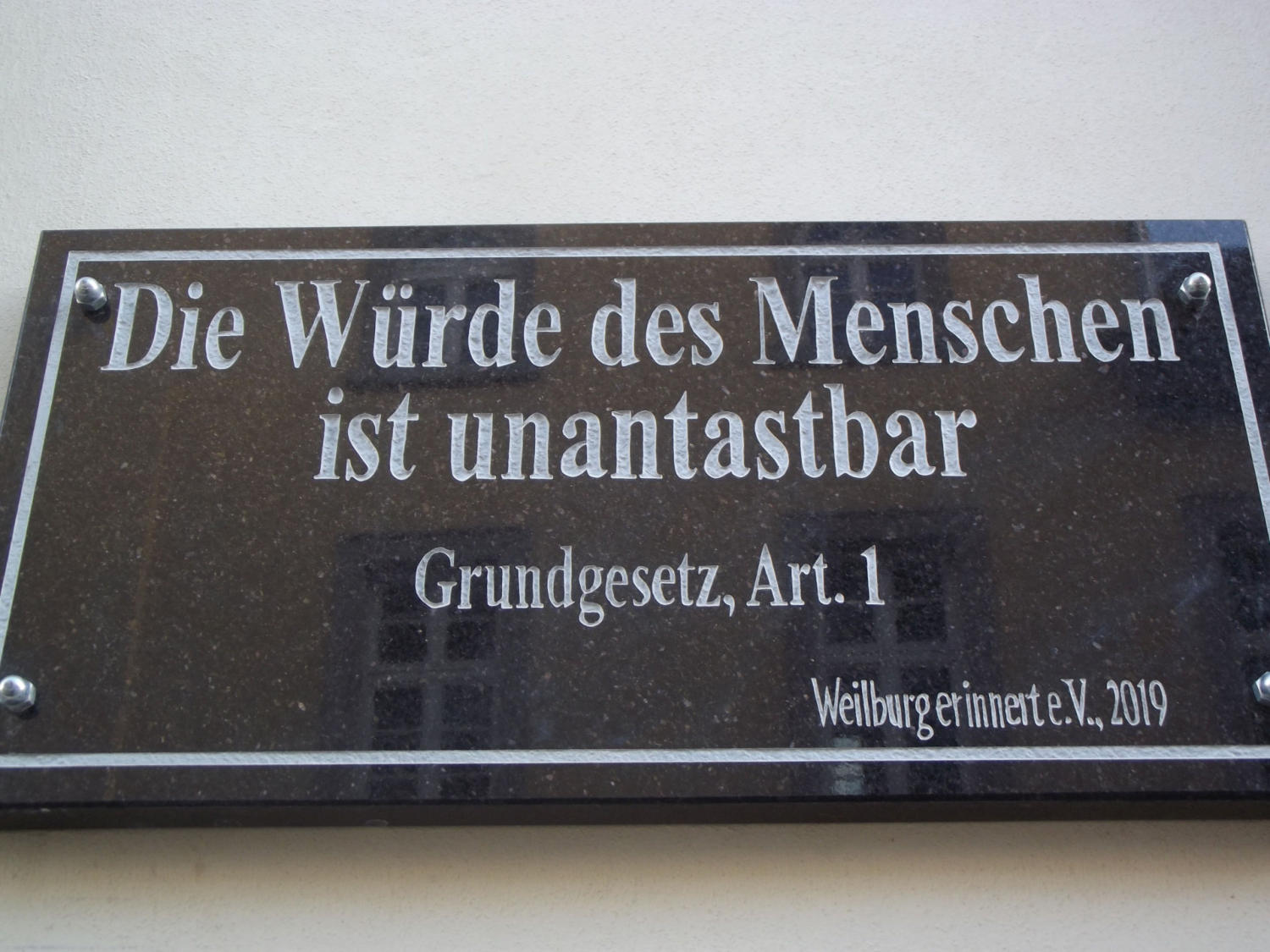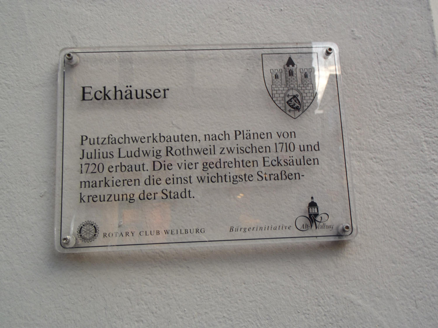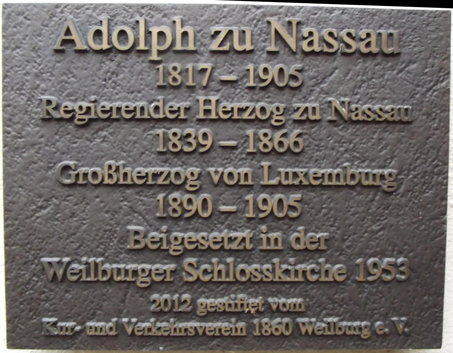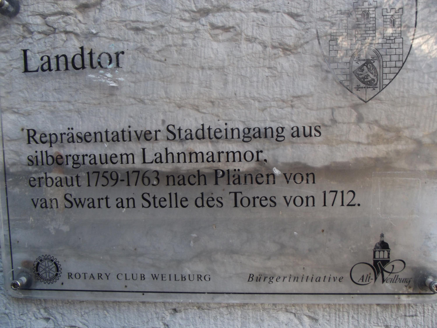 Die Seite zeigt 62+6 Inschriften auf Denkmälern, an Gebäuden und Informationstafeln in der Stadt Weilburg. Die folgende Auflistung ist in