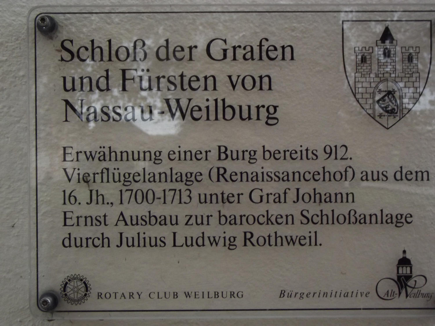 Hier befindet sich ein Link auf eine Liste der Kulturdenkmäler in Weilburg (Wikipedia).