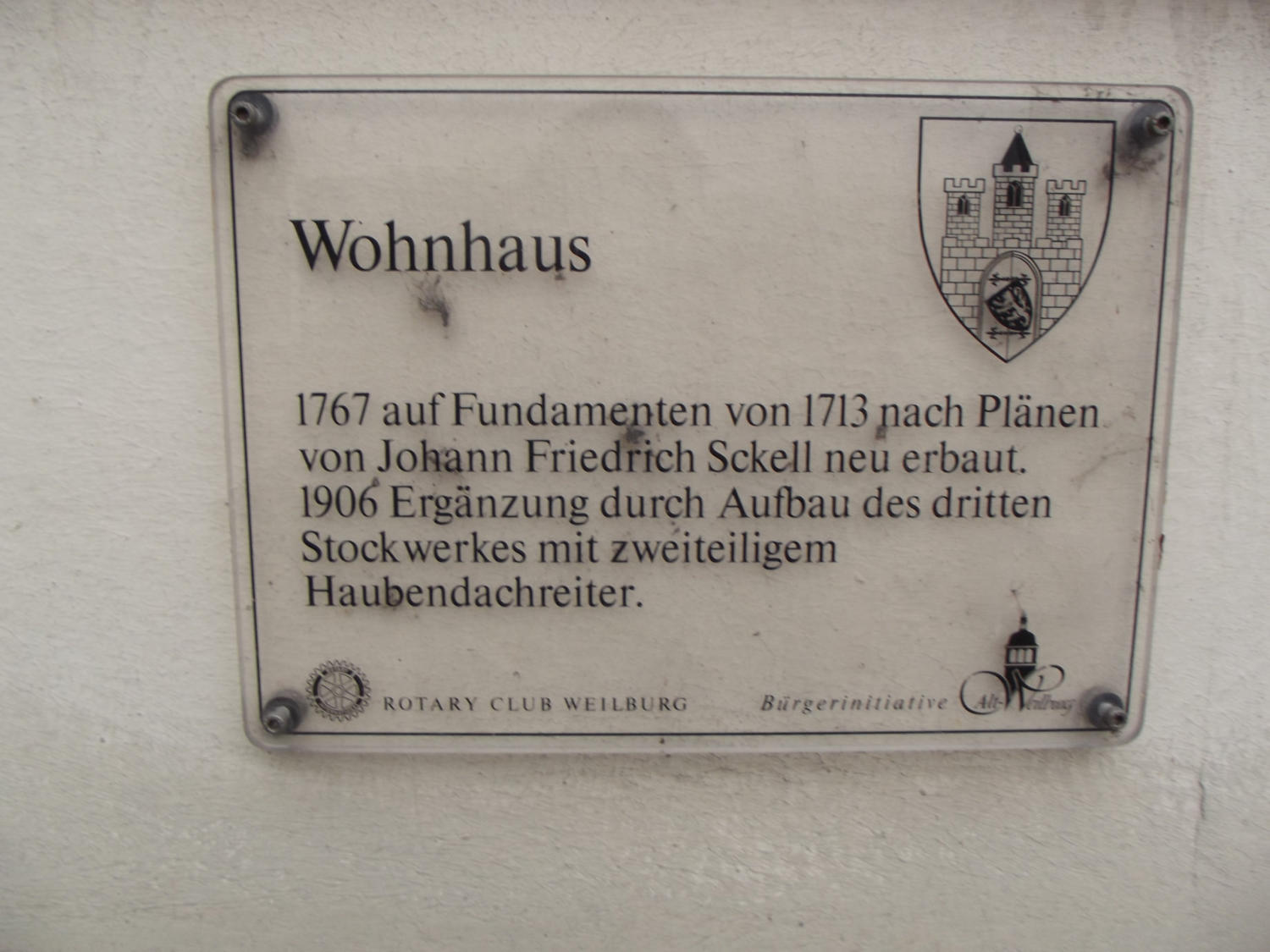 alphabetischer Reihenfolge aufgeführt und erhebt nicht den Anspruch an Vollständigkeit. Auf Hinweise auf weitere Inschriften in Weilburg wäre ich