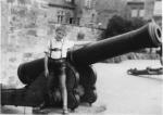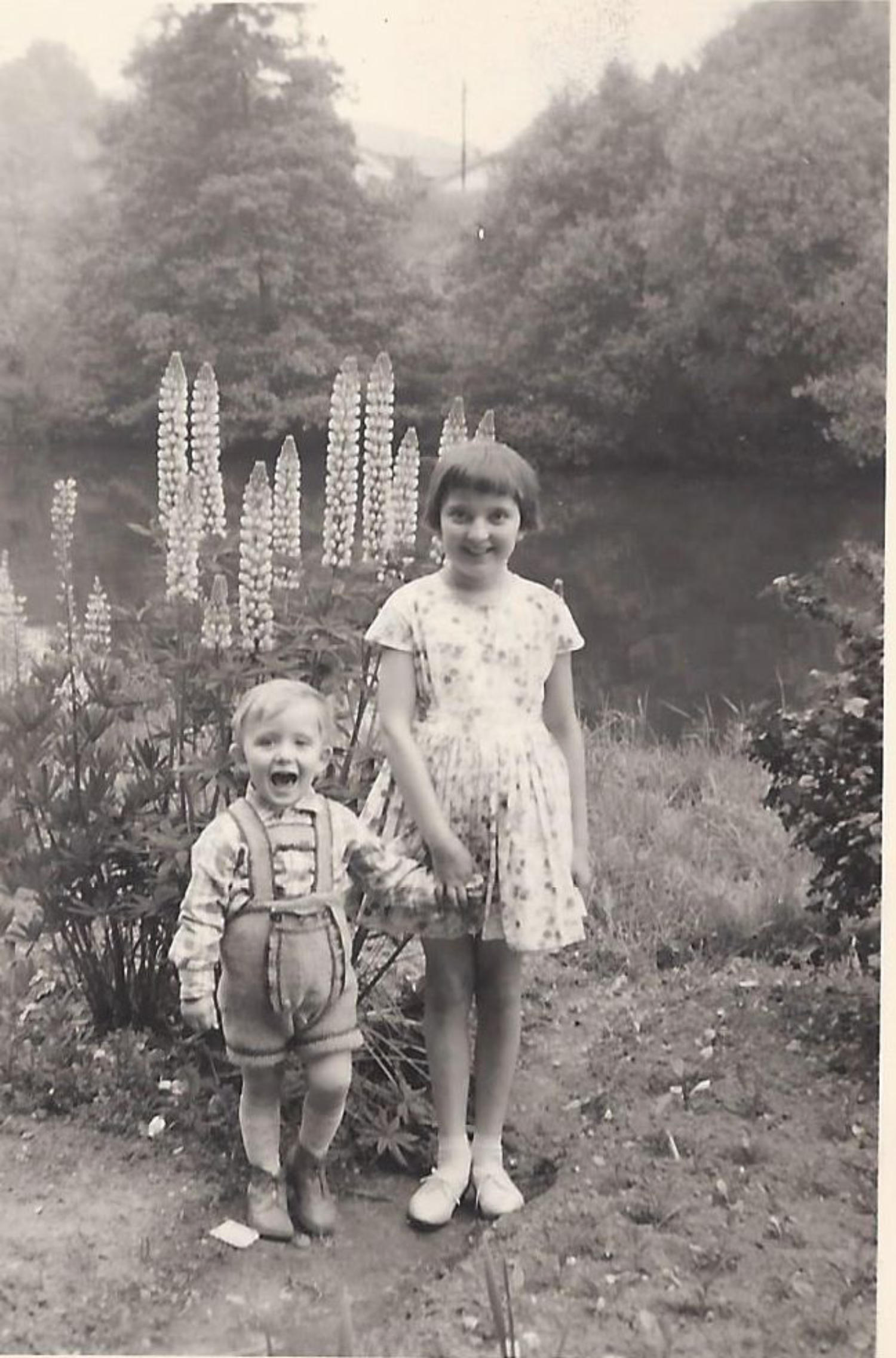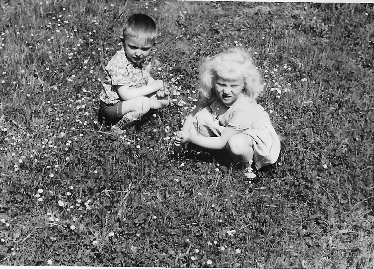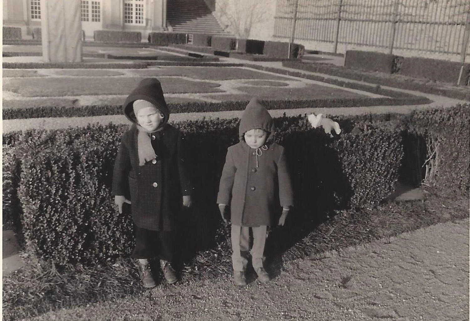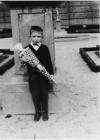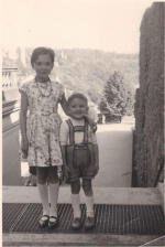 Schwester Karin und kleiner Rainer am Neptun-brunnen auf dem Marktplatz