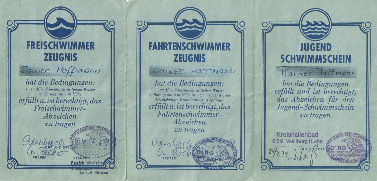 afloat. Then I did the swimming badges that existed back then (that was some form of ambition). In the summer, the