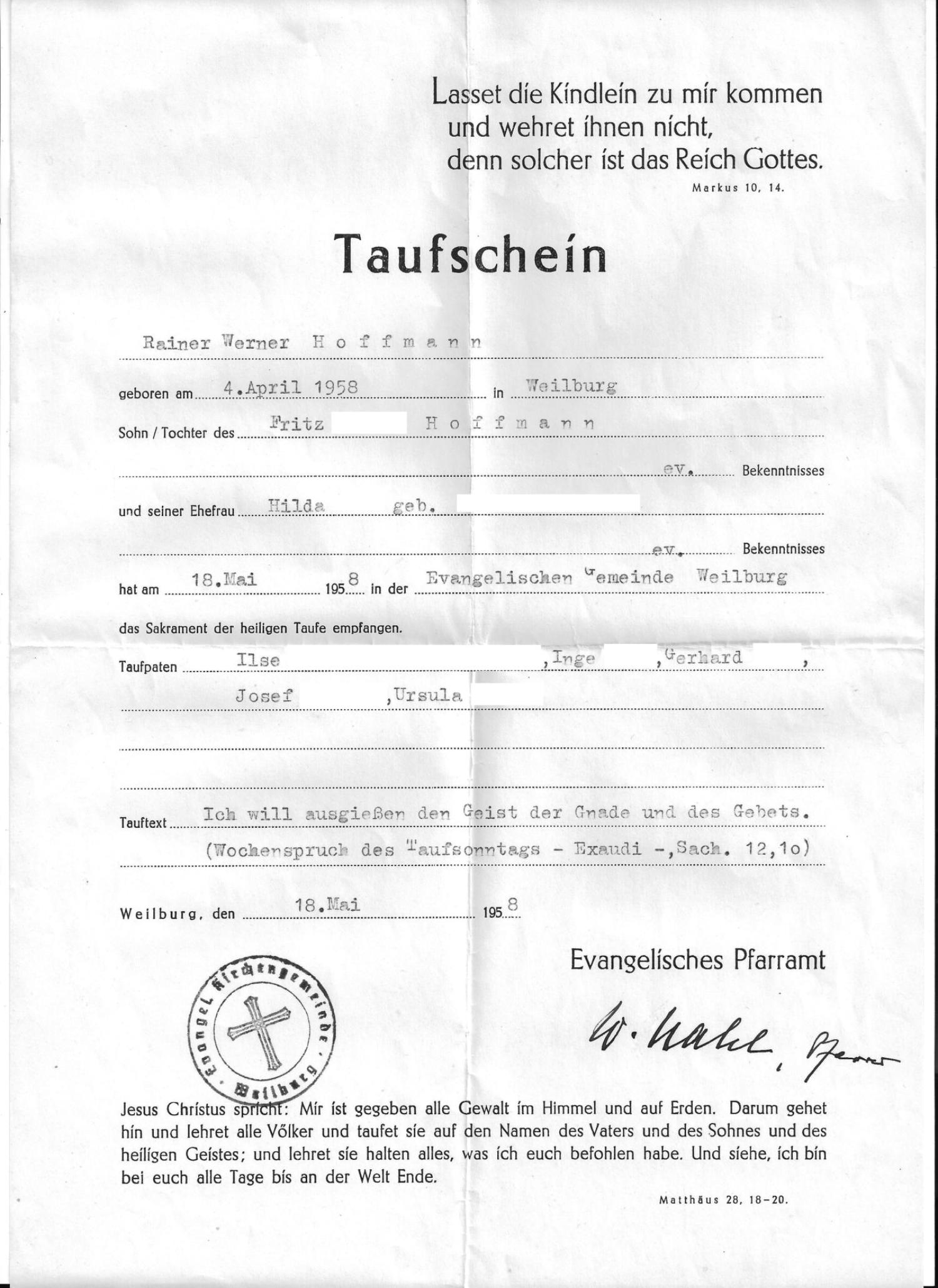 I was born in the spring of 1958 in the Schulgasse 9 in 6290 Weilburg.(Zodiac Sign Aries, Chinese Zodiac: Dog). My