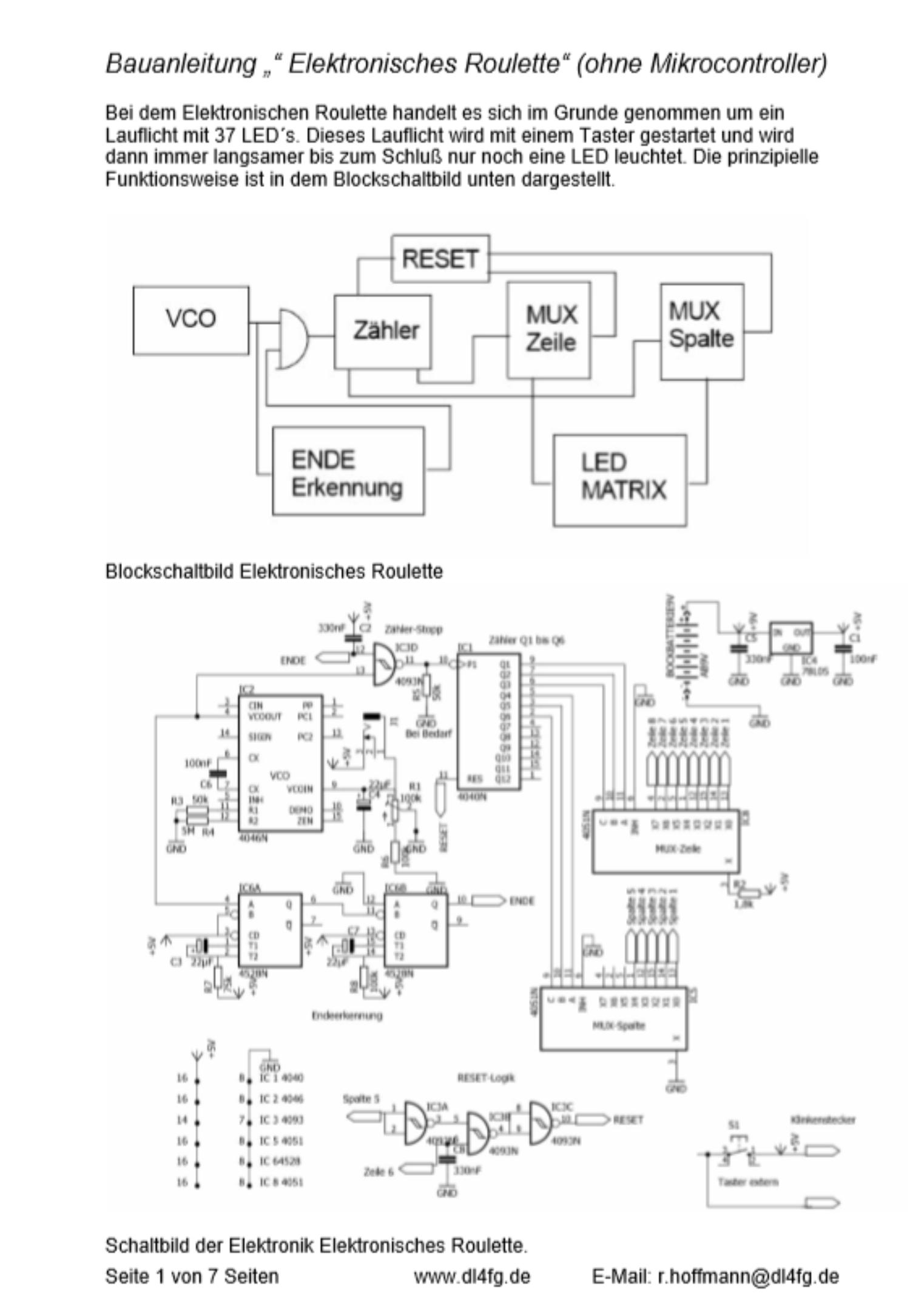 Bauanleitung „“ Elektronisches Roulette“ (ohne Mikrocontroller)
