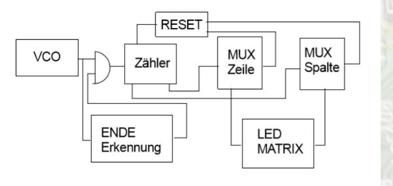 In order for the divider to start again at 0 after the 37. Led is lit, the divider must be reset. The reset signal is generated by a logic from the signal of