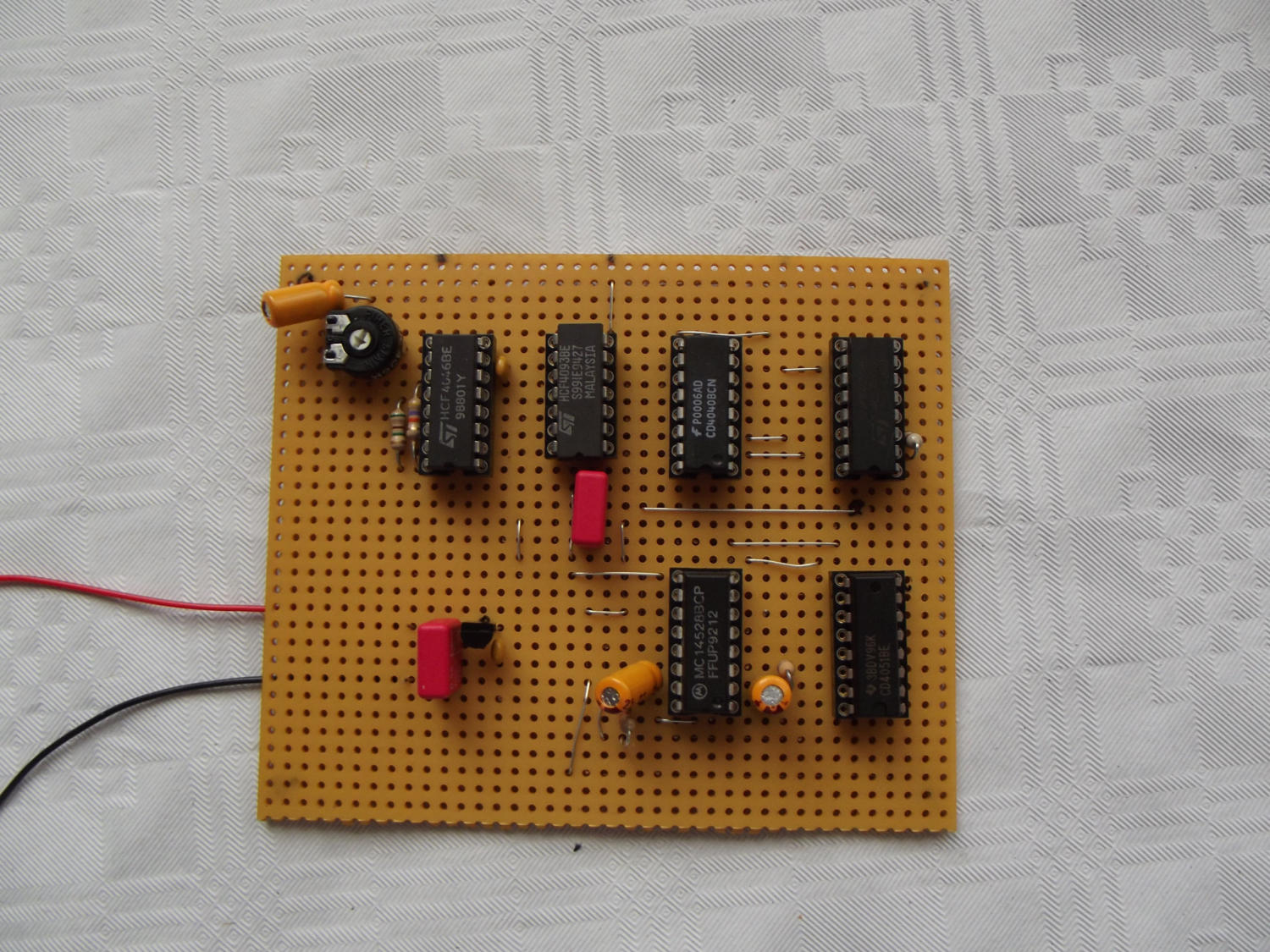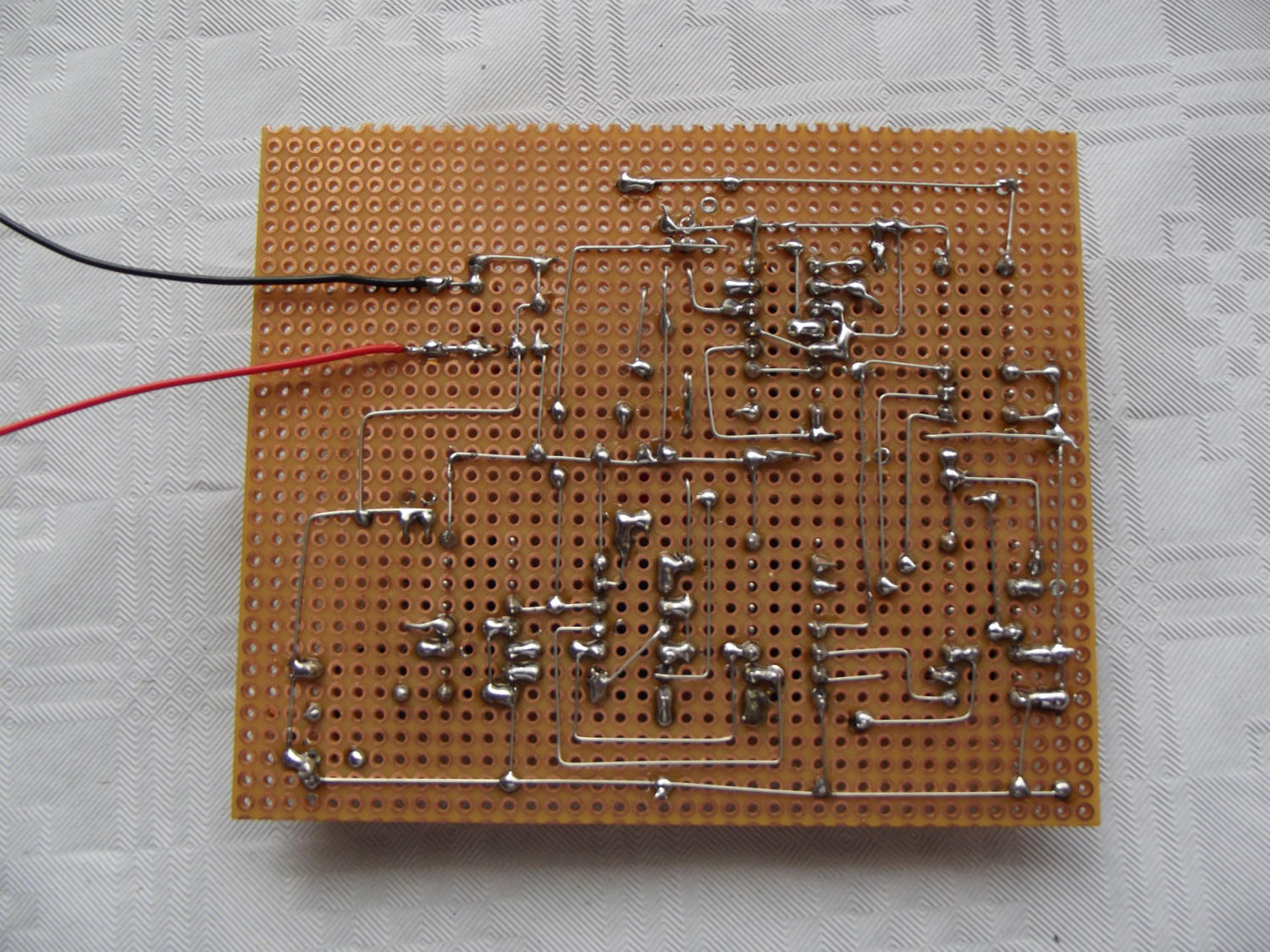 The construction of the circuit was carried out on a 100 x 85 mm ² (3,94 x 3,35 squareinch) Hole Raster Board 1.5 mm thick made of hard paper with