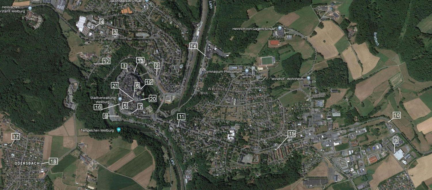 Numbered list of all lions found so far in Weilburg and the districts.